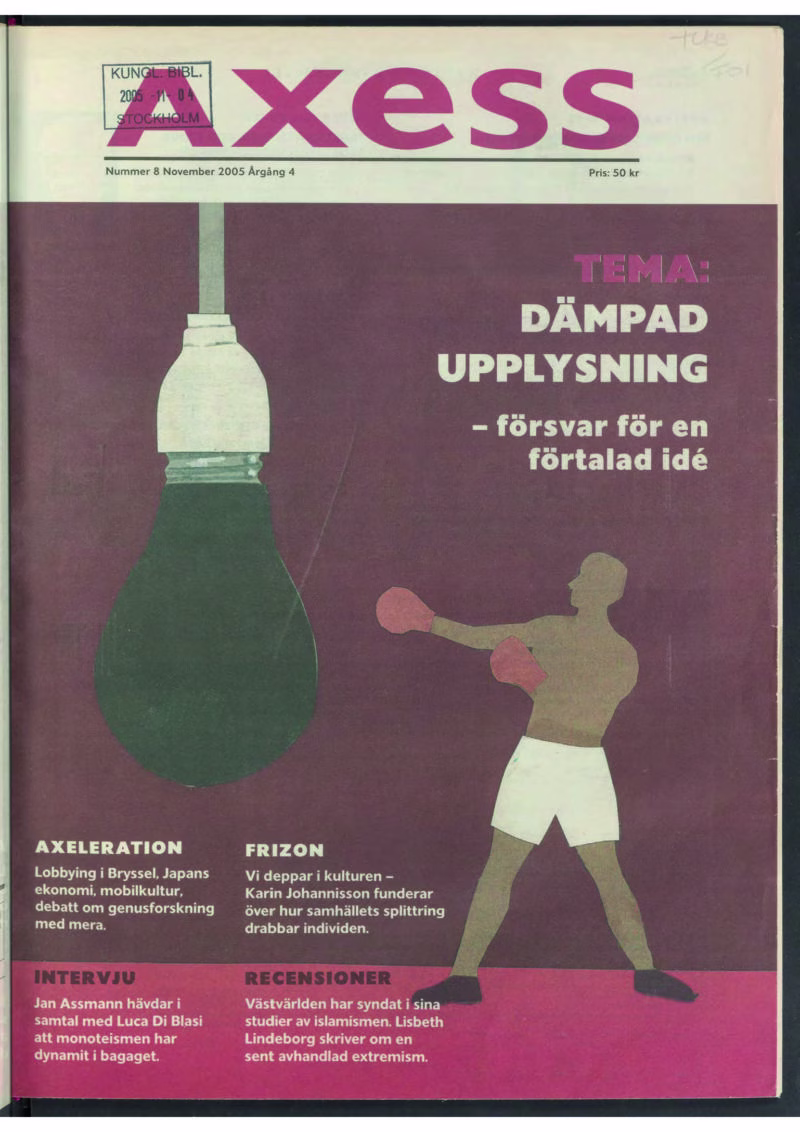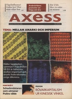 Axess är en tidskrift för nyfikna läsare som vill förstå världen bättre och som vill ha fördjupande läsning om vår tids stora frågor. Tidskriften erbjuder aktuell idédebatt inom samhällsvetenskap och humaniora. Vi har intervjuer, recensioner av svenska och internationella fackböcker samt essäer. Här hittar du alla våra nummer sedan starten 2002.